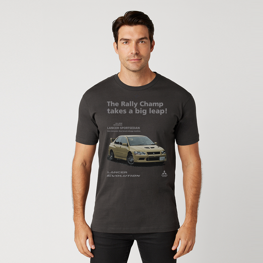 Unleash your inner champion with "The Rally Champ" T-Shirt from Mitsubishi Motors’ exclusive Heritage Collection. This stylish tee pays homage to the legendary 2001 Mitsubishi Lancer Evolution VII, a car that redefined performance and style in the automotive world. With its striking design, the Evolution VII boasted a longer wheelbase, wider track, and larger wheels, along with impressive enhancements like a powerful turbocharger, upgraded intercooler, magnesium rocker cover, hollow camshaft, and stainless steel exhaust. Feel the thrill of its maximum torque of 39.0kg-m at 3500 rpm, now captured in this commemorative shirt.
